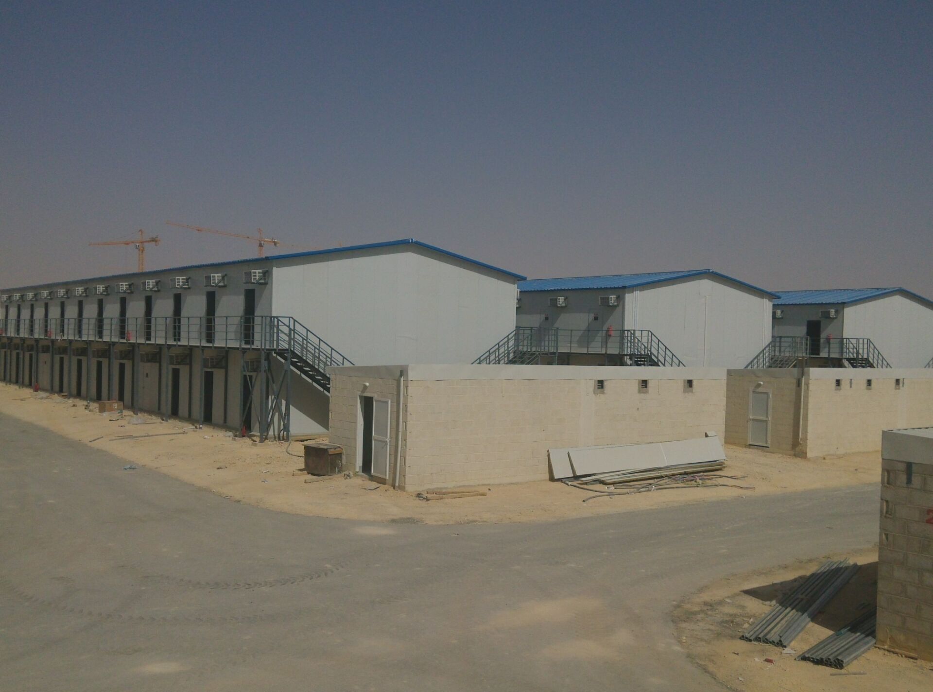 This Prefa house building labor camp located in Riyadh Saudi Arabia, which is supplied by Lida Group for SAUDI MOI Medical compound  project;  this site laour camp is composite with 21 units G+1 T Model prefab house worker Accommodation buildings, each unit 48 rooms, Each room could accommodate 6 workers, each building 288 workers,  totally around 6000 man camp.
